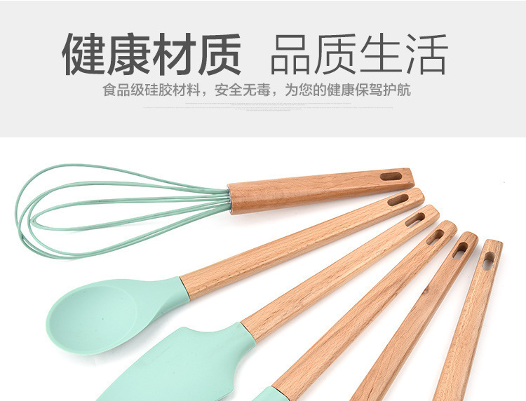 木柄硅胶厨具6件套,硅胶厨具六件套木柄