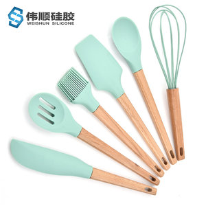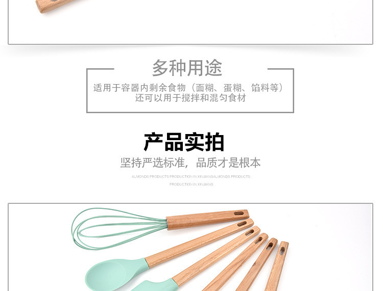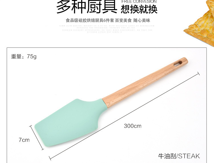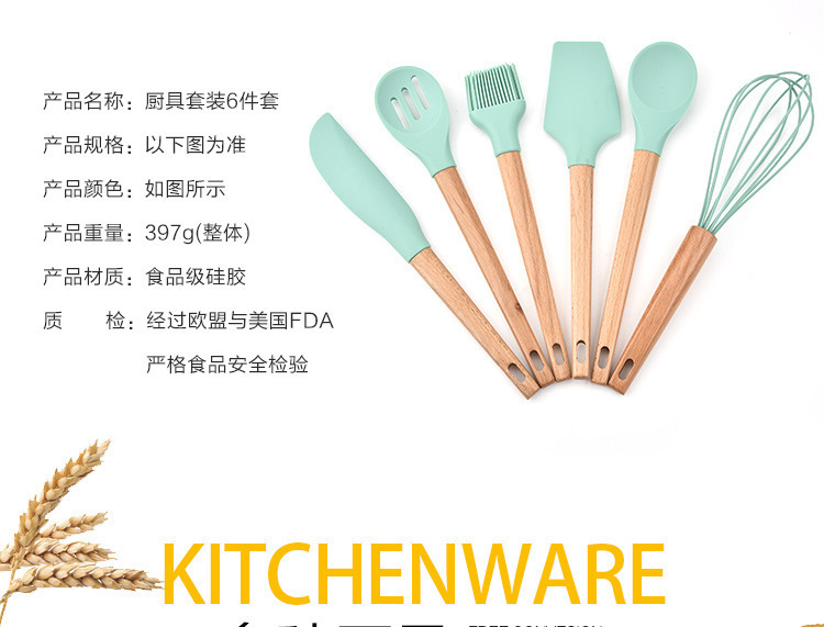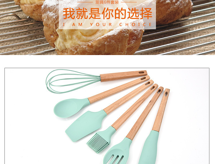 • 木柄硅胶厨具6件套,硅胶厨具六件套木柄