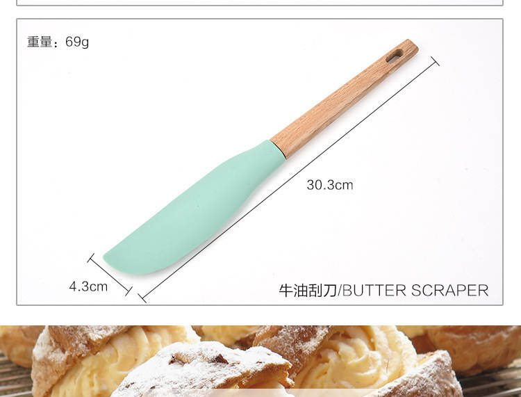 产品明细:牛油刮刀、食物刷子、密勺、打蛋器、漏勺、牛油刮