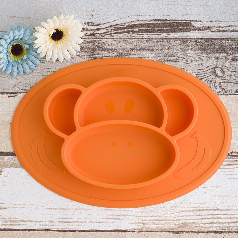 - 猴子硅胶餐盘,猴脸儿童硅胶餐盘,立体大嘴猴硅胶餐盘