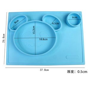 特点:二合一设计,防水、实用、方便,餐盘+餐垫一体式设计,餐垫可直接吸附在桌面上,熊猫造型,增加孩子的食欲,容量设计合理,防止儿童小手打翻。