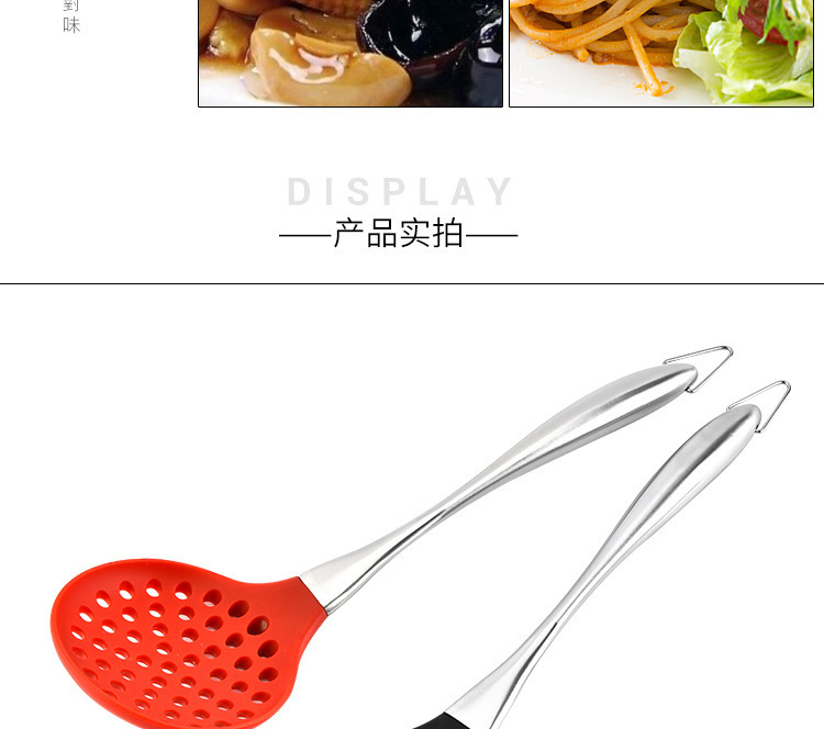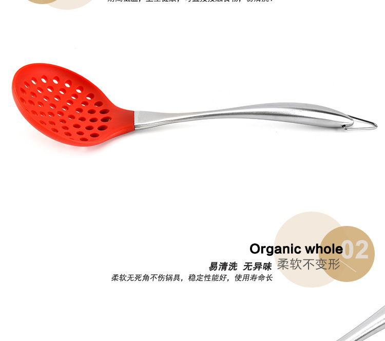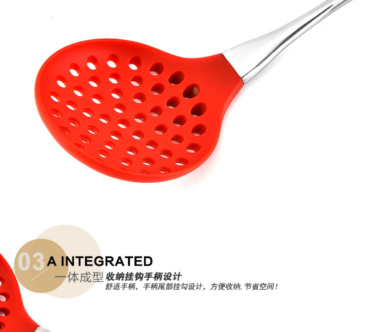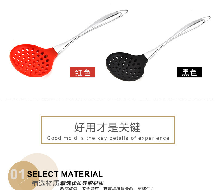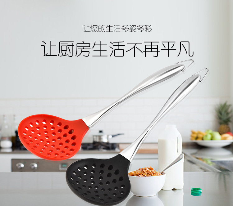 • 硅胶漏勺,不锈钢柄硅胶漏勺,硅胶捞面勺