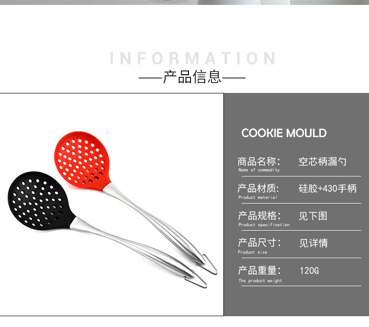 硅胶漏勺,不锈钢柄硅胶漏勺,硅胶捞面勺