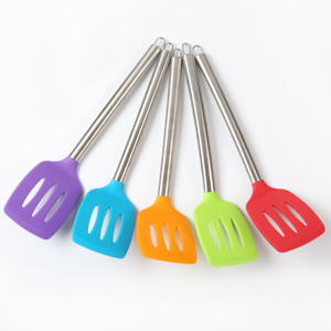 - 不锈钢柄硅胶漏铲,不锈钢长柄硅胶漏铲,不锈钢空心炒菜漏铲