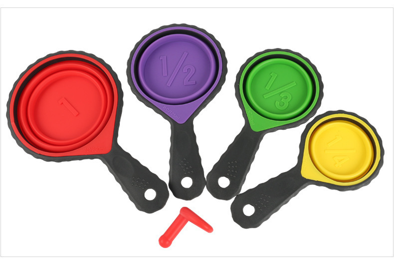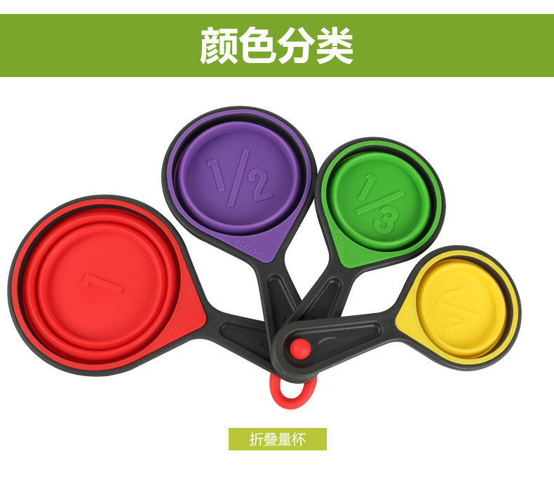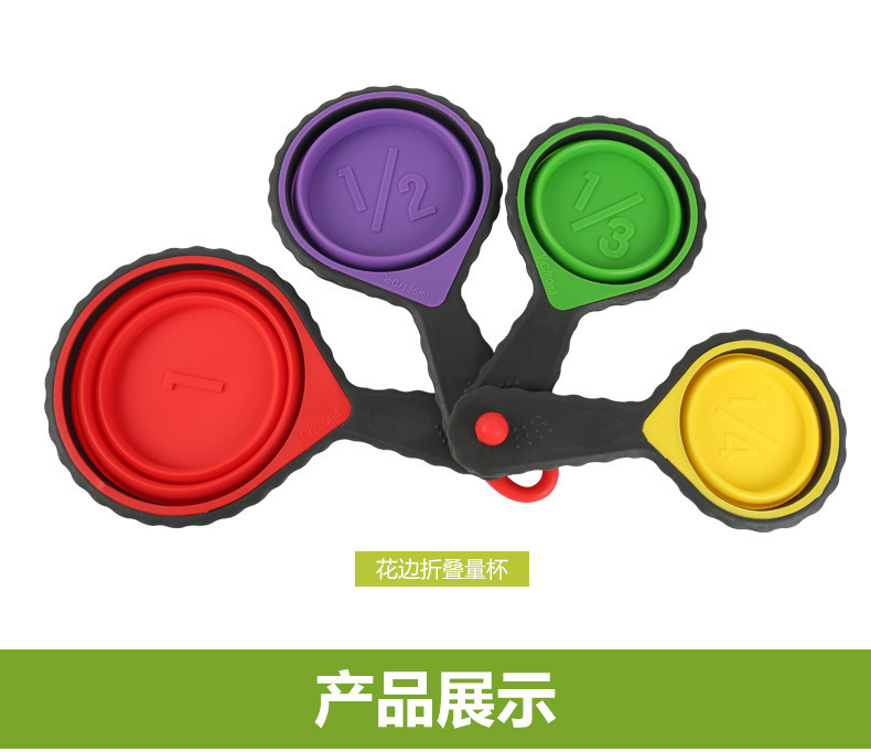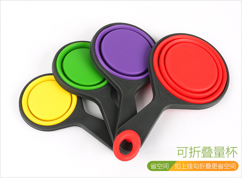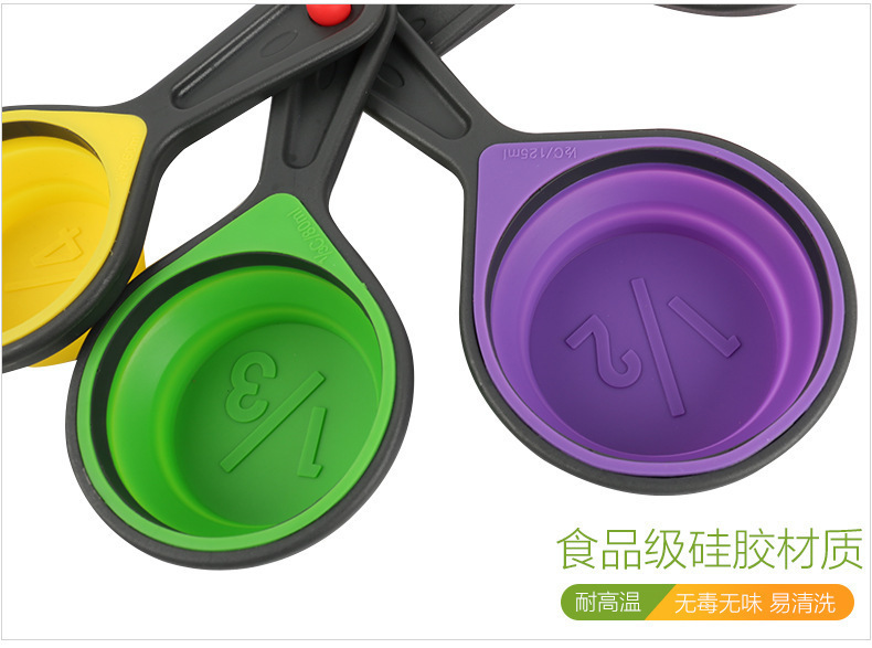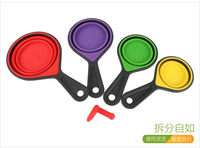 - 硅胶折叠量杯套装,硅胶量杯四件套,硅胶折叠量勺4件套