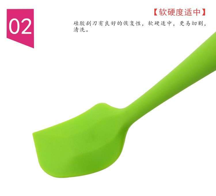 用途:做蛋糕,搅拌蛋白和蛋糕面糊均匀;可有效刮净搅拌盆表面的残留面糊、蛋白糊,集中食材并再次利用,减少损耗;抹平倒入模具中的面糊等等;清洗方便用于刮去不沾烤盘、不沾布、铝合金烤盘等上面的残渣、碎屑,不会刮伤产品表面。