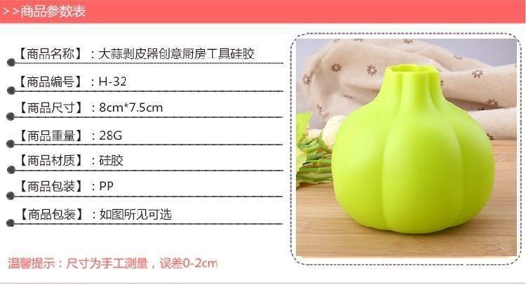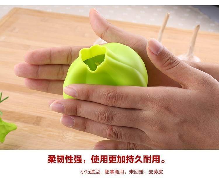 名称:硅胶剥蒜器尺寸:9*8cm克重:28g材质:食品级硅胶硅胶耐温范围:-40-230°包装:单只装开口PP袋