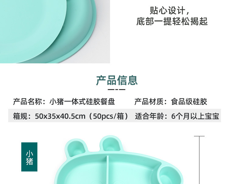 产品名称:小猪硅胶儿童餐盘 新模食品级环保无毒无味卡通可爱吸盘宝宝餐具