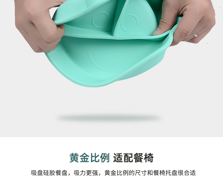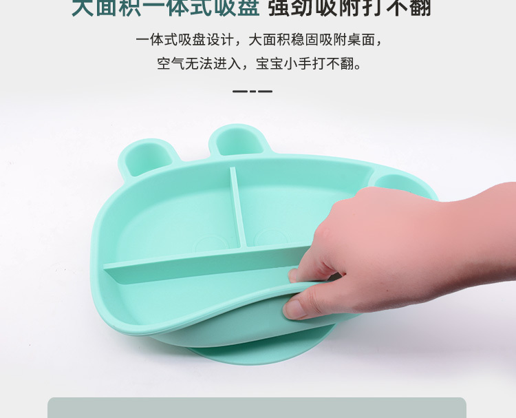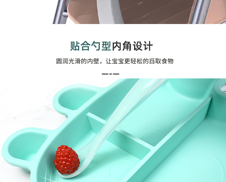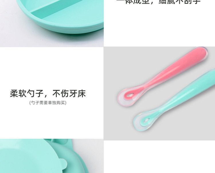 3、触感舒适,易握防滑,柔软硅胶材质,防滑防烫设计,宝宝吃饭更安全